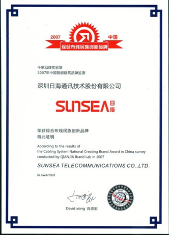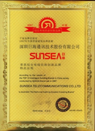2007年11月29日~30日,3044永利集团公司智能综合布线受邀前往上海光大会展中心酒店,参加由千家网筹办的“2007年第八届中国国际建筑智能化峰会暨颁奖典礼”,获得了“布线民族创新品牌”特别奖项。