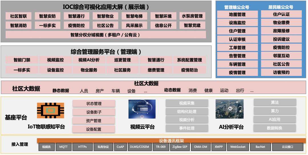 3044永利集团公司全新智慧社区解决方案打造了社区智联、智慧安防、智慧通行、智慧物业、智慧消防、一标多实、疫情防控、智慧党建、智慧电梯、智慧环境、泵房管理、社区公告、风采展示、信息公开等14个社区高频、重点应用场景,具备108项二级子功能,实现多场景覆盖。